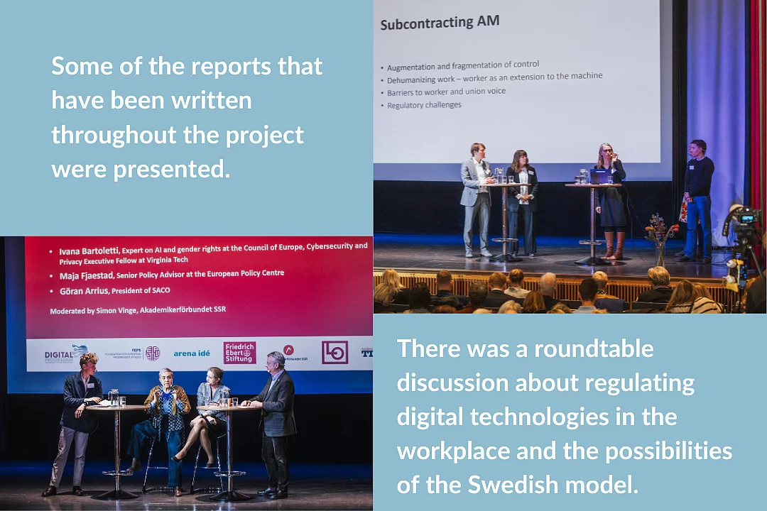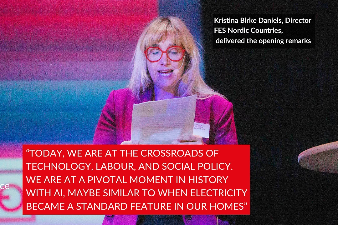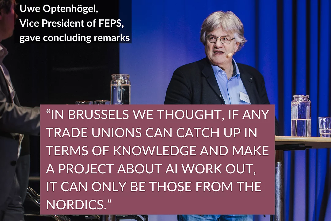 News Event Publication Economy and Labour AI in the Workplace: FEPS-Nordic Digital Programme Concludes with Inspiring Stockholm Conference 30.12.2024 Last week was a milestone for the FEPS-Nordic Digital Programme on Algorithms in the Workplace. We gathered for the final conference in Stockholm, which drew a full house and featured interesting discussions on AI - its opportunities and challenges from different perspectives. Nobel Laureate Daron Acemoglu, Professor at MIT, gave a thought-provoking keynote speech and later participated in a debate on AI with Magdalena Andersson, Leader of the Swedish Opposition (Social Democrats). The debate was moderated by Simon Vinge from SSR. The conference also saw the launch of a policy study carried out by the Karolinska Institute and Stockholm University written by Carin Håkansta, Ruben Lind, Pille Strauss-Raats and Pontus Blüme. This report presents results from a study set in Sweden on the ramifications of digital technologies and algorithmic management (AM) and how technology affects the prospects for workplace co-determination and democracy. Gallery from the conference Watch Daron Acemoglu's keynote speech where he discusses the potential of AI, as well as the challenges it brings. Daron Acemoglu keynote speech at theAlgorithmic Governance and the Swedish model conference This video is provided on YouTube. To look at it, you have to agree to our marketing cookies. Further information can be found in the detailed Data protection information. Accept Marketing Cookies and load video