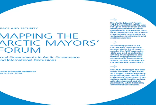Publication Mapping the Arctic Mayors’ Forum – Local Governments in Arctic Governance and International Discussions Mapping the Arctic Mayors' Forum Winther, Iselin Németh This publication, authored by Iselin Németh Winther from the Fridtjof Nansen Institute, maps out the Arctic Mayors’ Forum (AMF), a pioneering initiative founded in 2019 by 11 northernmost city mayors. The AMF was established to ensure that local governments and community leaders have a voice in Arctic governance, contributing to sustainable development and resilient communities across the region. Set against the backdrop of increasing global attention on the Arctic—due to climate change, economic opportunities, and international interest—the AMF bridges local concerns with global discussions. It complements existing governance structures, such as the Arctic Council, by emphasizing the human and community dimensions of the Arctic. This publication highlights the AMF’s potential to address challenges like public health, depopulation, and environmental sustainability while promoting collaboration among municipalities and international actors. Find out how the Arctic Mayors’ Forum is influencing governance and amplifying local voices in this globally significant region. Download the publication