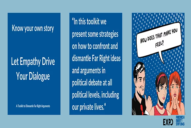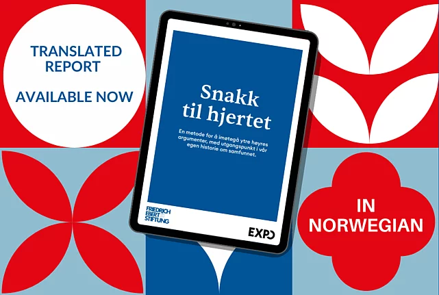 Publication Democracy and the Welfare State Now also in Norwegian! Dismantle Far Right Arguments with Our New Toolkit Snakk til hjertet Introducing our new toolkit in English, French, German, Swedish and Finnish, designed to provide you with effective strategies for confronting and dismantling Far Right ideas in political debates and other contexts. Canva Graphic elements by Giuseppe Ramos J, Zalquarius and Sketchify The toolkit serves as an introduction to a comprehensive training concept that aims to empower individuals to understand and combat the influence of far-right ideologies in society. The material is a work in progress, developed by Expo's research team, in close collaboration with researchers in behavioral science and psychology and in cooperation with the FES format for political analysis and education in several European countries. The strategies, which are dynamic and evolving, have been tested with a Nordic youth organisation and a FES parliamentary network . The toolkit, available in English, Finnish, Norwegian, Swedish, French and German, is just the beginning. It can be integrated into lectures, workshops and case-based training sessions. Download a copy in Norwegian, English, Finnish, Swedish, German or French, test the strategies and join us as we strive for a society where far-right ideologies have no influence.